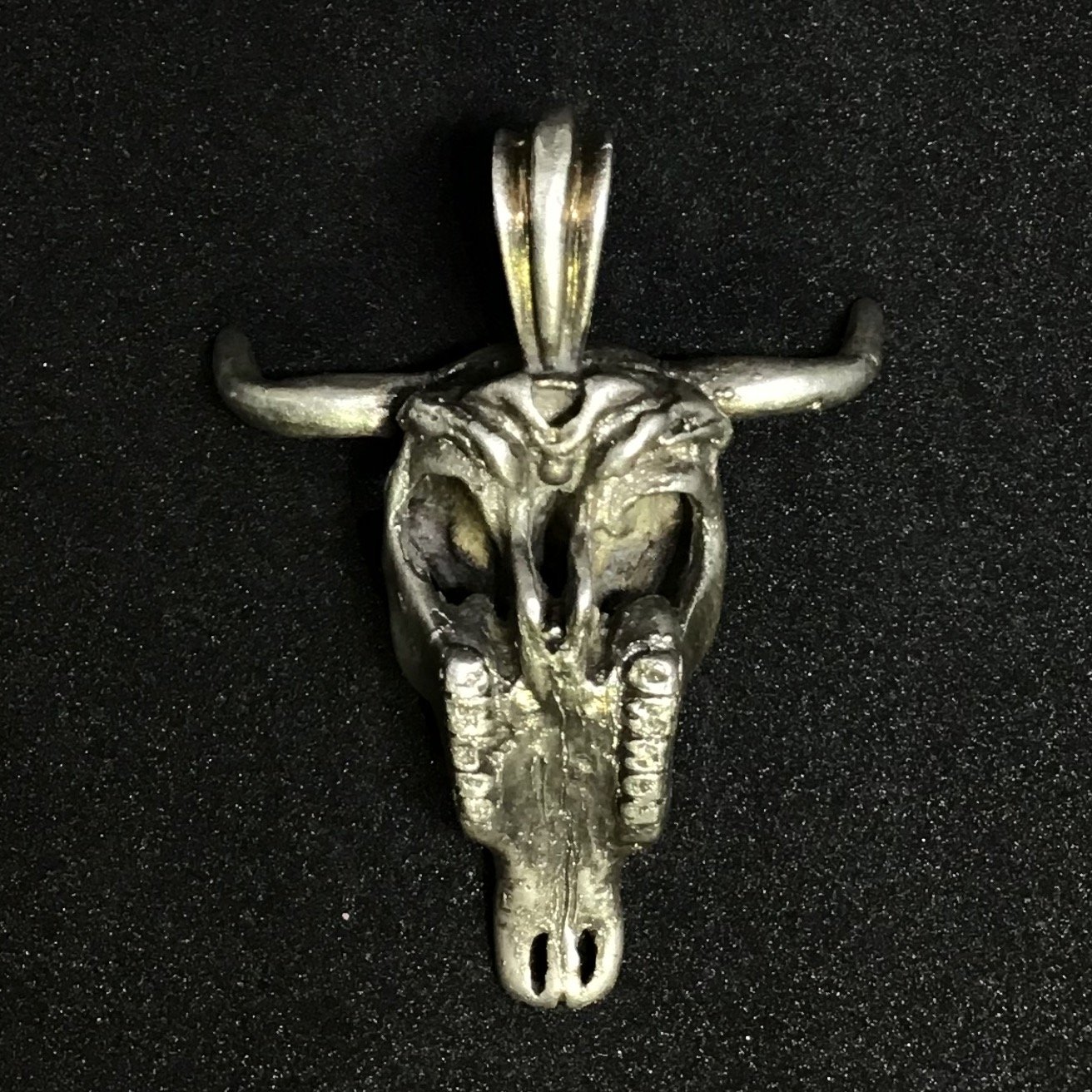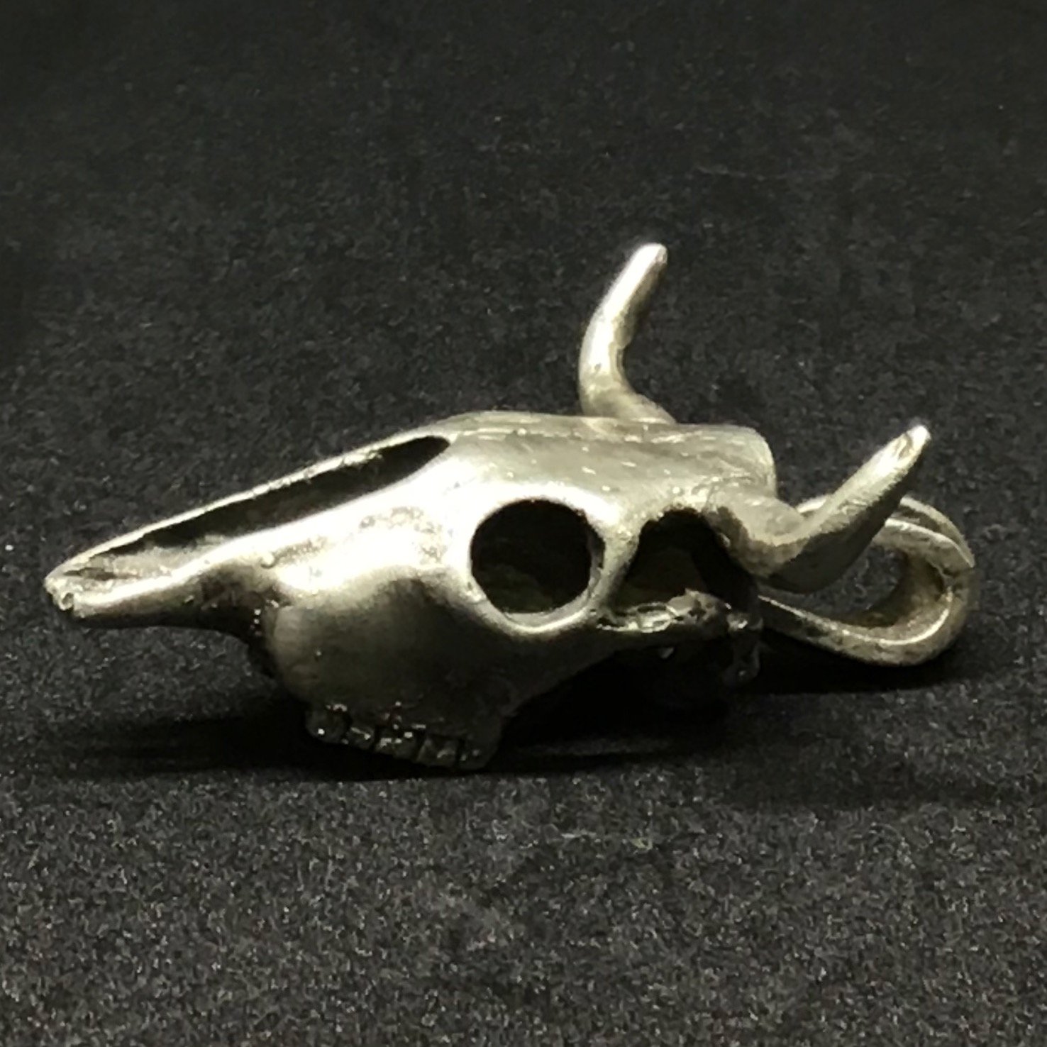 Colgante de cráneo de vaca. Acabado mate / Cow skull pendant. Matte finish